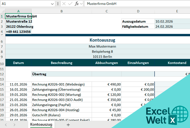 Kontoauszug Excel-Vorlage