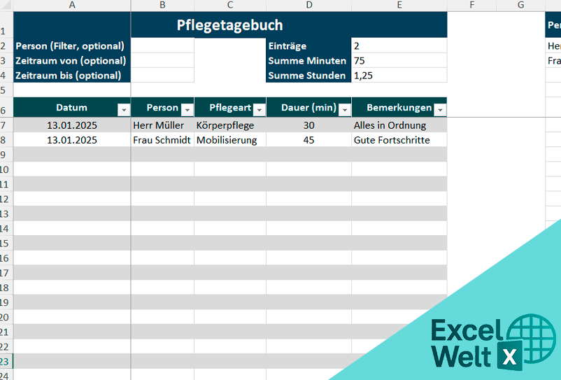 So nutzen Sie die Pflegetagebuch-Excel-Vorlage richtig