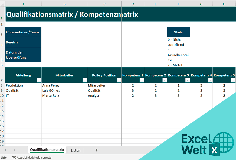 Qualifikationsmatrix Excel Vorlage