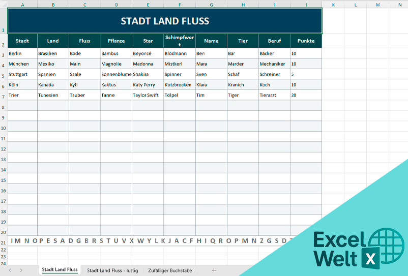 So nutzt du die Stadt Land Fluss Excel Vorlage im Spiel